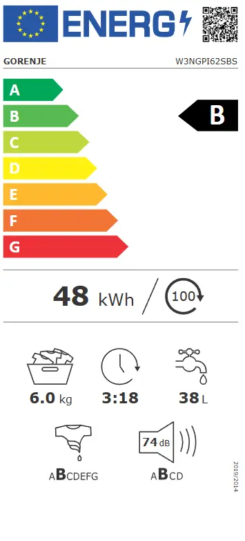 | Elektroenerģijas patēriņš 100 ciklos | 48 kWh |