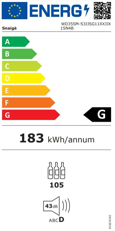 | Ikgadējais elektroenerģijas patēriņš | 183 kWh |